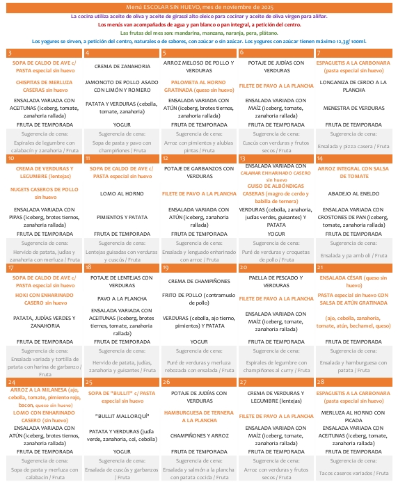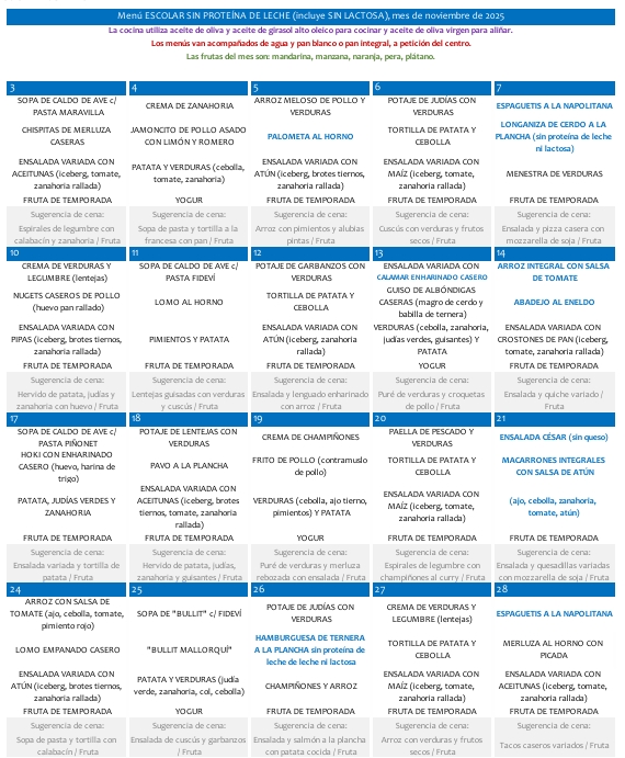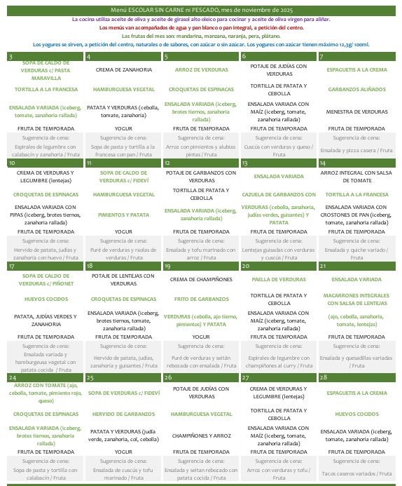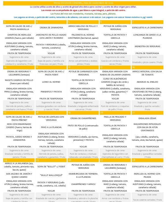 A continuació podreu consultar i descarregar-vos els menús del mes en curs.